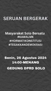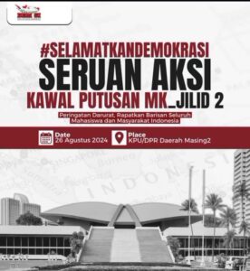 Sementara, gerakan mahasiswa di beberapa daerah dikabarkan akan menggelar aksi unjuk rasa 26 Agustus 2024 dengan membawa tuntutan antara lain Makassar turun aksi; “Jateng bergerak adili dan turunkan Jokowi”, “Rebut demokrasi rakyat” di DPR RI Jakarta; Salatiga bergerak tolak RUU Pilkada; Masyarakat Solo bersatu #KawalMK#HormatiKonstitusi#TegakkanDemokrasi di DPRD Solo.