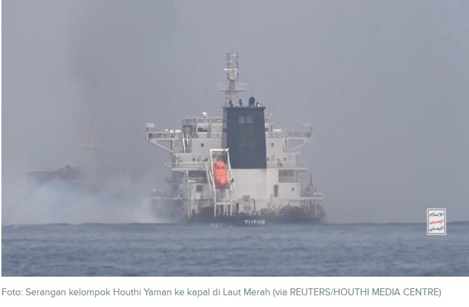 Sejak November lalu, Houthi telah menargetkan pengiriman di dan sekitar Laut Merah. Mereka mengatakan hal ini adalah bentuk protes perang Israel di Gaza, Palestina.